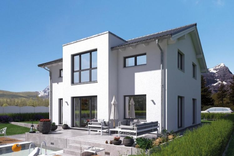 Sie sind am Bauen mit FingerHaus interessiert? Dann besichtigen Sie das Kundenhaus SENTO 301 A S130 mit 1,30 m Kniestock und Zwerchgiebel auf einer THERMO+ Fundamentplatte in der Ausbaustufe »fast fertig«. Das Effizienzhaus 40 Plus wird durch eine Luft/Wasser-Wärmepumpe beheizt.