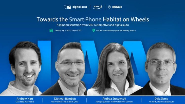 SBD Automotive und digital.auto präsentieren sich zum ersten Mal gemeinsam auf der diesjährigen IAA Mobility: die Geschäftsführerin von SBD Deutschland, Andrea Sroczynski, moderiert mit Prof. Dirk Slama (Chairman von digital.auto) eine spannende Podiumsdiskussion mit dem Titel „Towards the Smart Phone Habitat on Wheels“ in Halle B3 des Smart Mobility Space auf der IAA. Auf der…Continue reading SBD & digital.auto diskutieren das Thema „Towards the Habitat on Wheels“ auf der (Vortrag | München)
