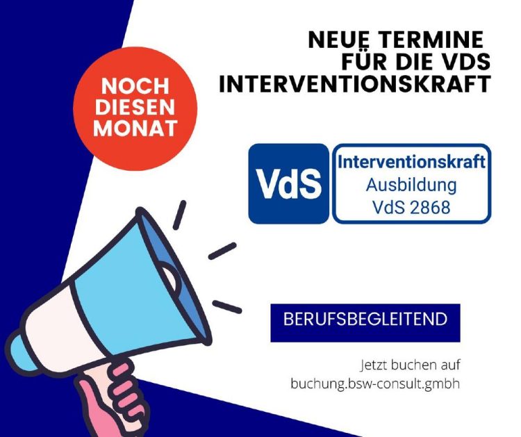 Gemäß der VDS-Richtlinie VDS 2172 müssen Interventionskräfte einen Lehrgang absolvieren, der aus 32 Unterrichtseinheiten besteht, gefolgt von einer abschließenden Wissensfeststellung.Die Bescheinigung über den erfolgreichen Abschluss der Wissensfeststellung dient als Nachweis gegenüber– der VdS Schadenverhütung GmbH– Auftraggebern sowie– den Erfordernissen der DIN 77200-2022. Dies bestätigt, dass die erforderliche Qualifikation für Interventionskräfte im Sinne der VdS-Anerkennung von…Continue reading Interventionskraft VdS – Zertifikatslehrgang mit Prüfung (Seminar | Sankt Augustin)