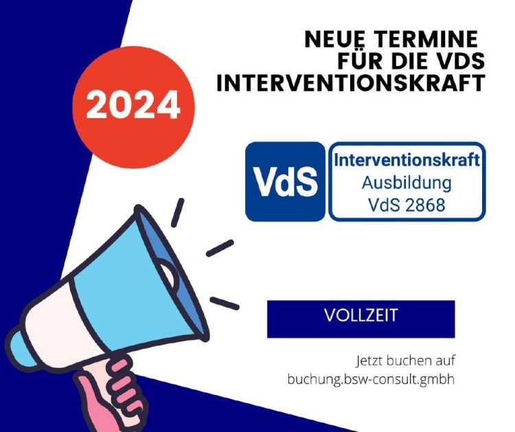 Gemäß der VDS-Richtlinie VDS 2172 müssen Interventionskräfte einen Lehrgang absolvieren, der aus 32 Unterrichtseinheiten besteht, gefolgt von einer abschließenden Wissensfeststellung.Die Bescheinigung über den erfolgreichen Abschluss der Wissensfeststellung dient als Nachweis gegenüber– der VdS Schadenverhütung GmbH– Auftraggebern sowie– den Erfordernissen der DIN 77200-2022. Dies bestätigt, dass die erforderliche Qualifikation für Interventionskräfte im Sinne der VdS-Anerkennung von…Continue reading Interventionskraft VdS – Zertifikatslehrgang mit Prüfung (Seminar | Essen)