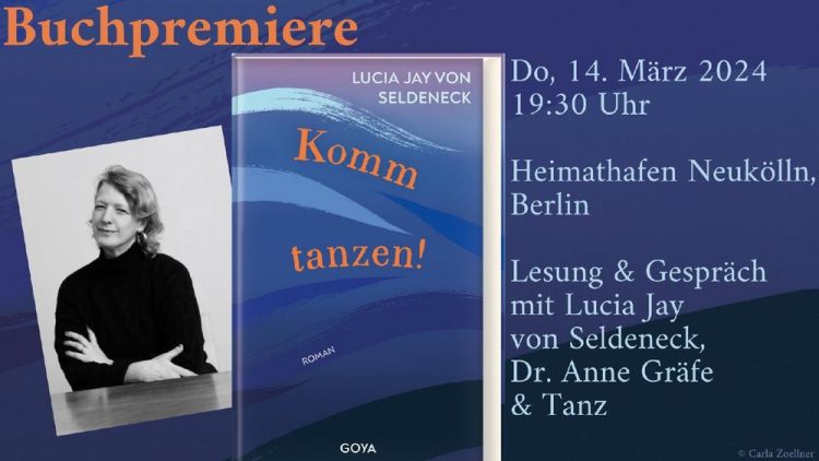 Der GOYA Verlag lädt Sie herzlich ein zur Buchpremiere von Komm tanzen! von Lucia Jay von Seldeneck am 14. März 2024 um 19:30 Uhr im Heimathafen Neukölln in Berlin. Es erwarten Sie eine Lesung, ein Autorinnengespräch, moderiert von Dr. Anne Gräfe, und Tanz.