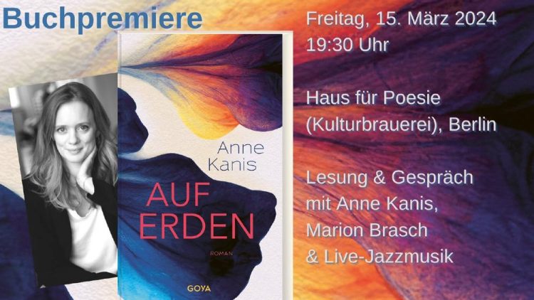 Der GOYA Verlag lädt Sie herzlich ein zur Buchpremiere von Auf Erden von Anne Kanis am 15. März 2024 um 19:30 Uhr im Haus für Poesie in Berlin. Es erwarten Sie eine Lesung, ein Autorinnengespräch, moderiert von Marion Brasch, und Live-Jazzmusik der Duo-Formation „Shrunk“.