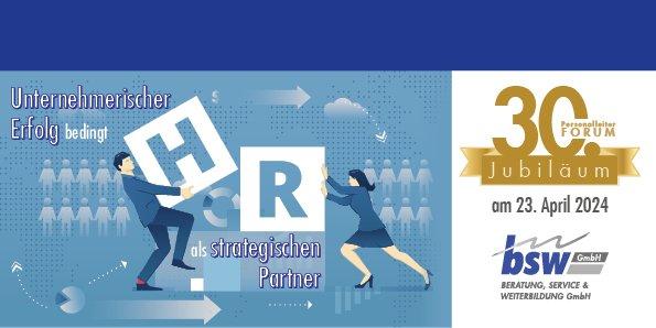 Unter dem Motto „Unternehmerischer Erfolg bedingt HR als strategischen Partner“ laden wir Personalleiter und Geschäftsführer herzlich ein zum 30. Personalleiterforum am 23. April 2024 in Radebeul.