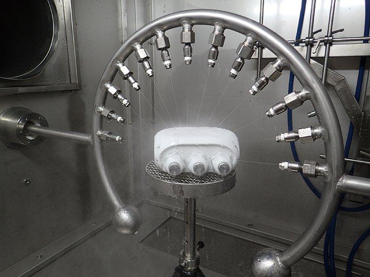 The IP protection class tests are type tests. Prototypes and samples are tested in the laboratory strictly in accordance with the specifications of the desired IP protection class. This involves testing the tightness against the ingress of particles and moisture.