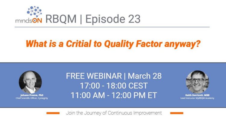 The guideline for Good Clinical Practices, ICH E6 (R3) draft, and ICH E8 (R1) introduce Critical to Quality (CTQ) Factors. What are they? How should they be used as part of RBQM? And whatever happened to critical processes and critical data? ABOUT „mindsON RBQM“ WORKSHOPS mindsON RBQM is a series of workshops by Cyntegrity’s MyRBQM…Continue reading mindsON RBQM Workshop | Episode 23: What is a Critical to Quality Factor anyway? (Webinar | Online)