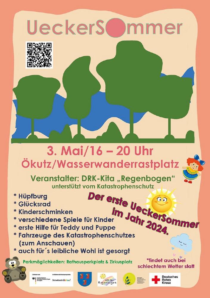 Der DRK-Kita „Regenbogen“ unterstützt vom Katrastrophenschutz lädt zum 1. UeckerSommer im Jahr 2024 am Ökutz/Wasserwanderrastplatz an der Uecker ein!