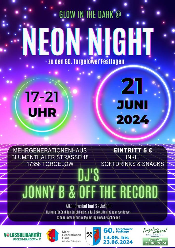 Die NEON NIGHT zu den 60. Torgelower Festtagen für Kinder- und Jugendliche bis zum Alter von 17 Jahren. Eine Schwarzlicht-Party für die Jugend im Mehrgenerationenhaus Torgelow. Eventdatum: Freitag, 21. Juni 2024 17:00 – 21:00 Eventort: Torgelow Firmenkontakt und Herausgeber der Eventbeschreibung: Stadt PasewalkAm Markt 1217309 PasewalkTelefon: +49 (3973) 2510Telefax: +49 (3973) 251287http://www.pasewalk.de Weiterführende Links Zum…Continue reading Glow in the dark @ NEON NIGHT (Unterhaltung / Freizeit | Torgelow)