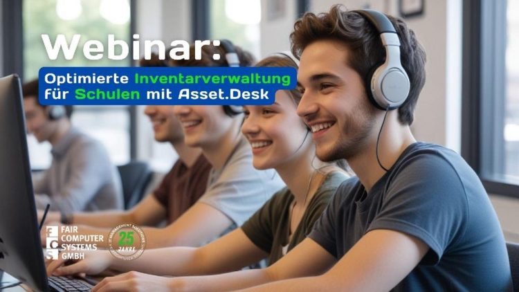 Die FCS Fair Computer Systems GmbH lädt ein zu einem kostenlosen Webinar über die effiziente Inventarverwaltung in Schulen und Bildungseinrichtungen mit der Software Asset.Desk. Das Webinar findet am 27. Juni 2024 von 10:15 bis 11:00 Uhr statt und wird von Julian Saalfrank, einem erfahrenen Experten von FCS, geleitet.