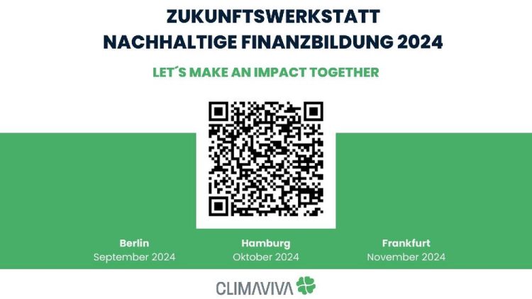 Anmeldung: https://climaviva.de/bildung/zukunftswerkstatt-nachhaltige-finanzbildung/zukunftswerkstatt-nachhaltige-finanzbildung-2024-anmeldung/