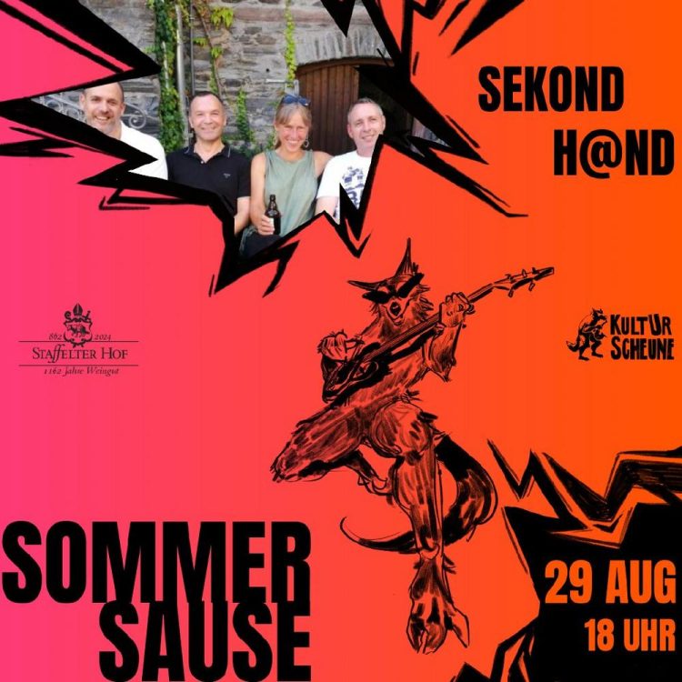Am 29. August laden wir Sie herzlich zu einem unvergesslichen Abend im ältesten Weingut der Welt ein. Freuen Sie sich auf einen entspannten Sommerabend mit Livemusik, exquisitem Wein und köstlichem Essen. Die vierköpfige Band sek@nd haend aus Wittlich wird Sie mit unplugged gespielten Oldies, Rock- und Rock’n’Roll-Klassikern begeistern. Die kraftvolle Stimme von Frontfrau Julie Valerius…Continue reading Ein Sommerabend im ältesten Weingut der Welt: Musik, Wein und Genuss in Kröv (Unterhaltung / Freizeit | Kröv)