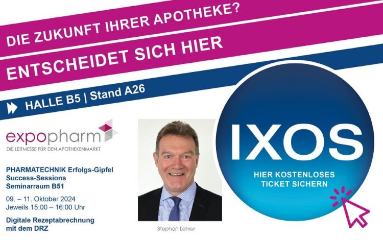 In diesem spannenden Vortrag wird Stephan Lehrer zusammen mit Thomas Heinhold, Key Account Manager DRZ täglich vom 09. – 11.10.2024 jeweils von 15:00 – 16:00 Uhr im Seminarraum B51 aufzeigen, warum das DRZ + IXOS das „Perfekte Match“ ist für die Rezeptabrechnung in der erfolgreichen Vor-Ort-Apotheke.