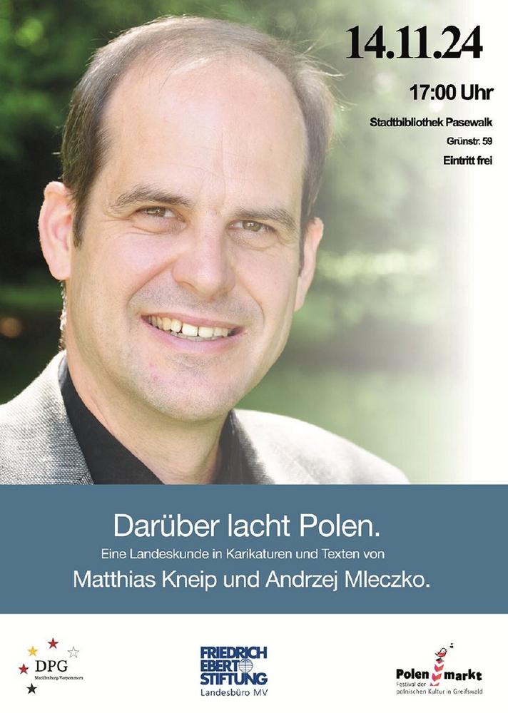 Eine Landeskunde in Karikaturen und Texten von Matthias Kneip und Andrzej Mleczeko in der Stadtbibliothek Pasewalk. Eventdatum: Donnerstag, 14. November 2024 17:00 – 23:59 Eventort: Pasewalk Firmenkontakt und Herausgeber der Eventbeschreibung: Stadt PasewalkAm Markt 1217309 PasewalkTelefon: +49 (3973) 2510Telefax: +49 (3973) 251287http://www.pasewalk.de Weiterführende Links Zum Event Originalinserat von Stadt Pasewalk Alle Events von Stadt Pasewalk…Continue reading Darüber lacht Polen (Unterhaltung / Freizeit | Pasewalk)