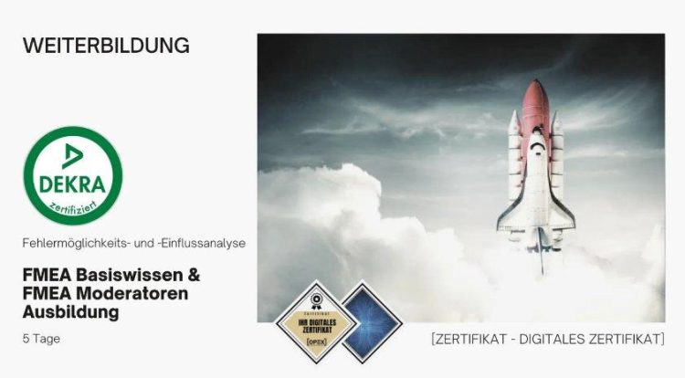 Das FMEA Basiswissen / FMEA Grundlagenseminar (2 Tage) bietet einen umfassenden Überblick über die Anwendungsbereiche und die Einbettung der FMEA Methode in Qualitätsstrategien. Erweiterte Arbeitsweisen sowie die Unterscheidung in System-, Konstruktions- und Prozess-FMEA werden dabei detailliert thematisiert. Wichtige Kernelemente des Seminars bilden dabei die VDA-konforme Anwendung der 7 Schritte der FMEA. Dieses Seminar richtet sich an Interessierte und Führungskräfte, die einen vertieften Überblick sowie grundlegendes Verständnis über die FMEA Methode benötigen, als auch an Mitarbeiter, welche Ihre Arbeitsweise im Risikomanagement vertiefen möchten. Für die Teilnahme am FMEA Grundlagenseminar sind keine Vorkenntnisse erforderlich.