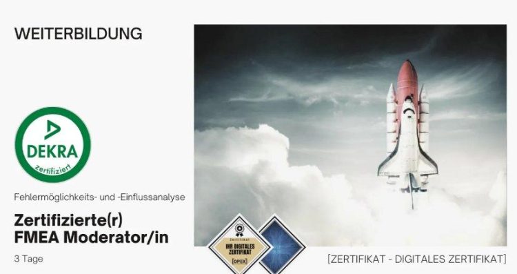 Die FMEA Moderatorenausbildung, das FMEA Moderatoren Training / Seminar richtet sich an alle Mitarbeiter, welche sich als zukünftige Moderatoren qualifizieren wollen und an Entwicklungs- und Prozessingenieure sowie an alle Führungskräfte (Projektleiter), die am Produktentstehungsprozess beteiligt sind. Als zukünftiger FMEA Moderator sind Sie in der Lage FMEA-Teamsitzungen effizient und praxisnah zu moderieren und damit wertvolle Ressourcen optimal zu nutzen. In der Rolle als aktiver und passiver Moderator werden Sie in die Lage versetzt, die Mitarbeiter zur nachhaltigen Umsetzung zu motivieren. Für die Teilnahme an der FMEA Moderatorenausbildung sind FMEA Grundkenntnisse und/oder Erfahrungen als Teammitglied in FMEA Projekten notwendig.