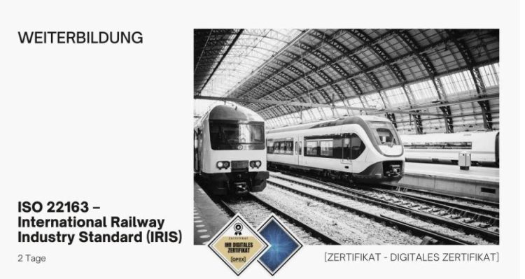 IRIS (International Railway Industry Standard) ist der Standard für ein Qualitätsmanagementsystem in der Schienenfahrzeugindustrie. Er hat mittlerweile durch die Einführung der ISO 22163 in 2023 auch eine Aufwertung vom Branchenstandard der europäischen Bahnindustrie zum weltweit anerkannten ISO-Standard erfahren. IRIS-Zertifizierungsverfahren Das IRIS-Zertifizierungsverfahren besteht aus dem Zusammenwirken der IRIS-Zertifizierungsregeln nach Revision 4, der IRIS-Zertifizierungstechnologie und der Anwendung der ISO 22163:2023. Die neuen Regelungen…Continue reading ISO 22163 – International Railway Industry Standard Revision 4 Seminar (Seminar | Frankfurt am Main)