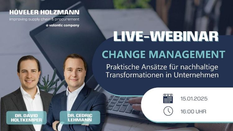Erfolgreiche Veränderungsprozesse erfordern mehr als nur gute Absichten – sie benötigen eine klare Strategie, geeignete Methoden und vor allem die aktive Einbindung aller Beteiligten. Genau hier setzt unser Webinar an: Dr. David Holtkemper (Principal) und Dr. Cedric Lehmann (Manager) vermitteln Ihnen praxisorientierte Ansätze und Tools, um Change Management gezielt und nachhaltig umzusetzen.