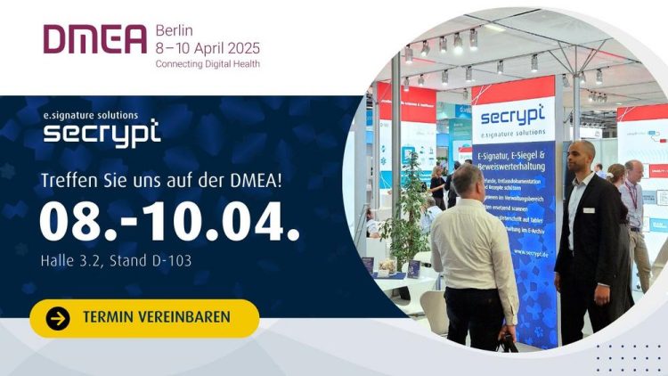 Vereinbaren Sie jetzt Ihren persönlichen Termin mit uns auf der DMEA 2025 und erfahren Sie, wie Sie Ihre digitalen Prozesse optimieren können: www.secrypt.de/messetermin