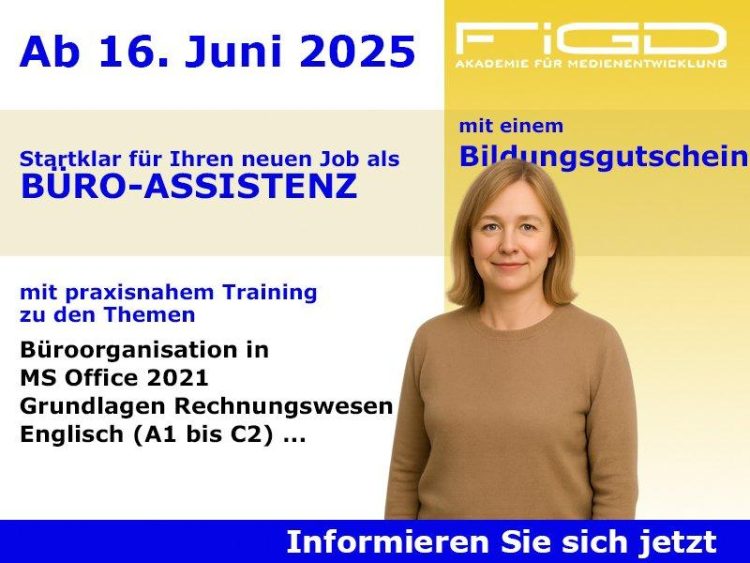 Weiterbildung zur Büroassistenz – Start am 16. Juni 2025 Sie möchten beruflich im Büro durchstarten und suchen eine solide, zukunftssichere Qualifikation? Dann ist diese Weiterbildung ideal für Sie!In unserem 9-monatigen Kurs zur Büroassistenz erlangen Sie fundierte Kenntnisse in den zentralen Bereichen der modernen Büroorganisation, der kaufmännischen Buchführung sowie im professionellen Umgang mit digitalen Werkzeugen und…Continue reading Fit für den Büroalltag: MS Office, Buchhaltung und Englisch auf Profi-Niveau (Schulung | Berlin)