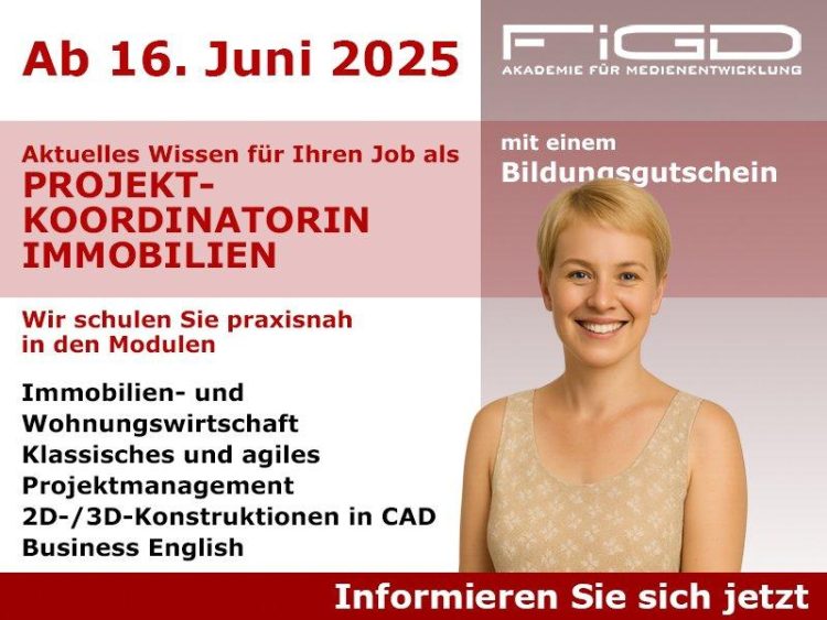 Weiterbildung zur Projektkoordinatorin / zum Projektkoordinator Immobilien Sie interessieren sich für die dynamische Welt der Immobilien und Bauprojekte? In unserer praxisnahen Weiterbildung bereiten wir Sie gezielt auf Ihre Rolle als Projektkoordinator Immobilien vor. Sie lernen, Immobilienprojekte ganzheitlich zu planen, zu steuern und erfolgreich umzusetzen. Ein Schwerpunkt liegt auf der Arbeit mit CAD-Software (2D/3D), mit der…Continue reading Immobilienprojekte managen und erfolgreich vermarkten – jetzt durchstarten! (Schulung | Berlin)