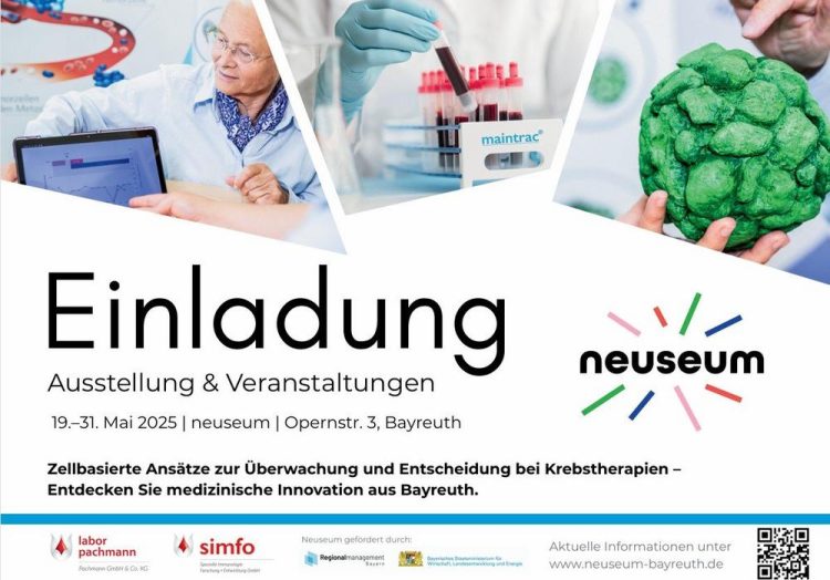 Sehr geehrte Damen und Herren,ich lade Sie herzlich ein, unsere Verfahren der zellbasierten Tumordiagnostik kennenzulernen. Erfahren Sie, wie unsere Verfahren helfen, Therapien besser zu überwachen und individueller zu gestalten. Ob interessierte Besucherinnen und Besucher, Betroffene, Angehörige oder Fachpublikum kommen Sie vorbei, stellen Sie Ihre Fragen und kommen Sie mit uns ins Gespräch! Veranstaltungen & Highlights…Continue reading Zellbasierte Ansätze zur Überwachung und Entscheidung bei Krebstherapien: Ausstellung im neuseum (Ausstellung | Bayreuth)