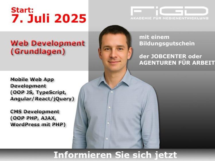 Digitale Technologien entwickeln sich rasant – und mit ihnen der Arbeitsmarkt. Wer HTML5, CSS3, JavaScript, MySQL oder PHP beherrscht, sich im Umgang mit modernen CMS-Systemen wie WordPress auskennt und die Logik hinter benutzerfreundlichen Webanwendungen versteht, ist gefragt wie nie. Die Weiterbildung „Web Development (Grundlagen)“ richtet sich an Menschen mit soliden PC-Kenntnissen, Interesse an digitaler Gestaltung und dem Wunsch, beruflich neu durchzustarten.