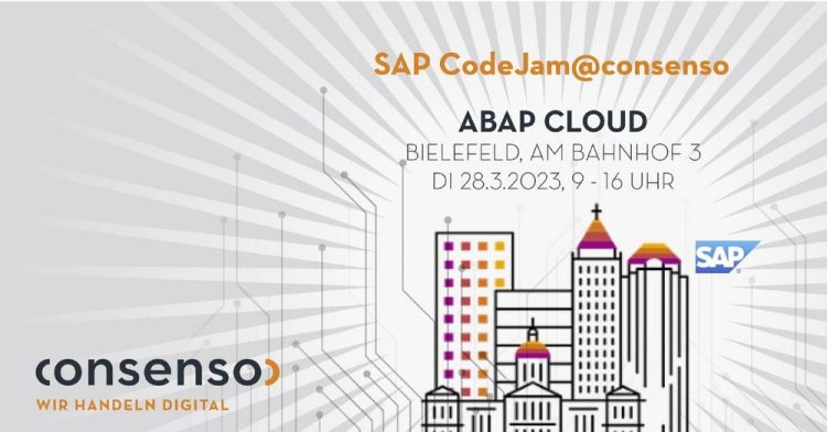 consenso. WIR HANDELN DIGITAL Und bringen die innovativen SAP Themen zu uns nach Bielefeld! Im Rahmen ihrer Roadshow 2023 kommen die SAP CodeJam-Referenten Rich Heilman und Thomas Jung nach Ostwestfalen und vermitteln live und vor Ort die ABAP Cloud-basierte Entwicklung von SAP Fiori-Apps und OData-Services. Also, liebe SAP Developer, dabei sein und das neue ABAP-Entwicklungsmodell für S/4HANA Cloud,…Continue reading SAP CodeJam@consenso – ABAP Cloud (Schulung | Bielefeld)