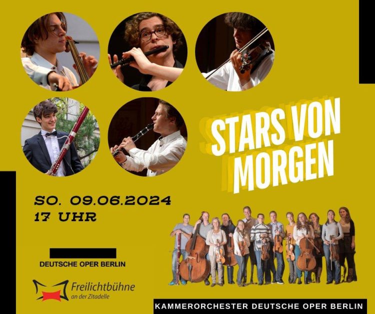 Das Kammerorchester der Deutschen Oper Berlin unter der Leitung von Daniel Draganov präsentiert in Zusammenarbeit mit dem Kulturhaus Spandau und unserer Internationalen Musikakademie herausragende junge Berliner Solisten, die am Beginn einer großen Karriere stehen. Neben Antonio Vivaldis berühmtem „Sommer“ aus den Vier Jahreszeiten erklingen Solokonzerte von Pergolesi, Vivaldi, Stamitz und Haydn. Freuen sie sich auf…Continue reading STARS VON MORGEN (Unterhaltung / Freizeit | Berlin)