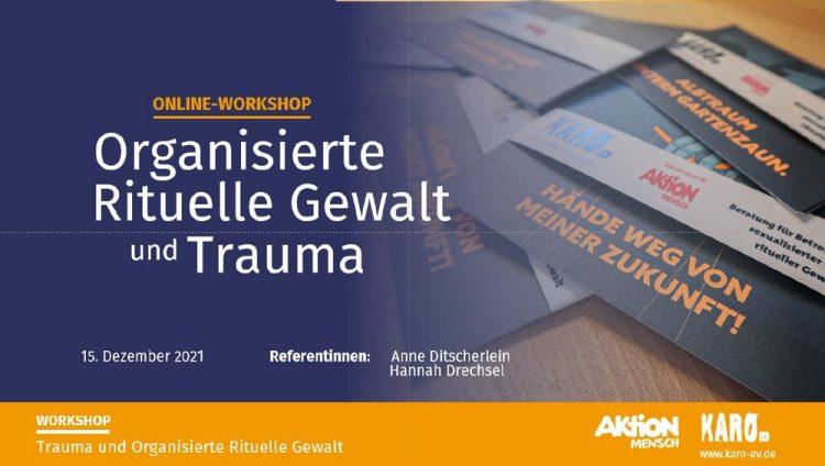 Seit 2017 vernetzt der Arbeitskreis Rituelle Gewalt Professionen, die mit Betroffenen arbeiten. Der KARO-Verein bringt diese Fachkräfte am 29.11.2023 erneut in Plauen zusammen.Als Referentin konnte Esther Peschkes von der Arbeitsgemeinschaft Psychosoziale Integration und Rehabilitation API gGmbH Berlin gewonnen werden.Sie wird ihren Träger mit Angeboten für Betroffene von ritueller Gewalt und ihre Arbeit als Bezugsbegleitung und…Continue reading Sexualisierte, organisierte Gewalt – 12. Arbeitskreis in Plauen | KARO-Verein (Kongress | Plauen)