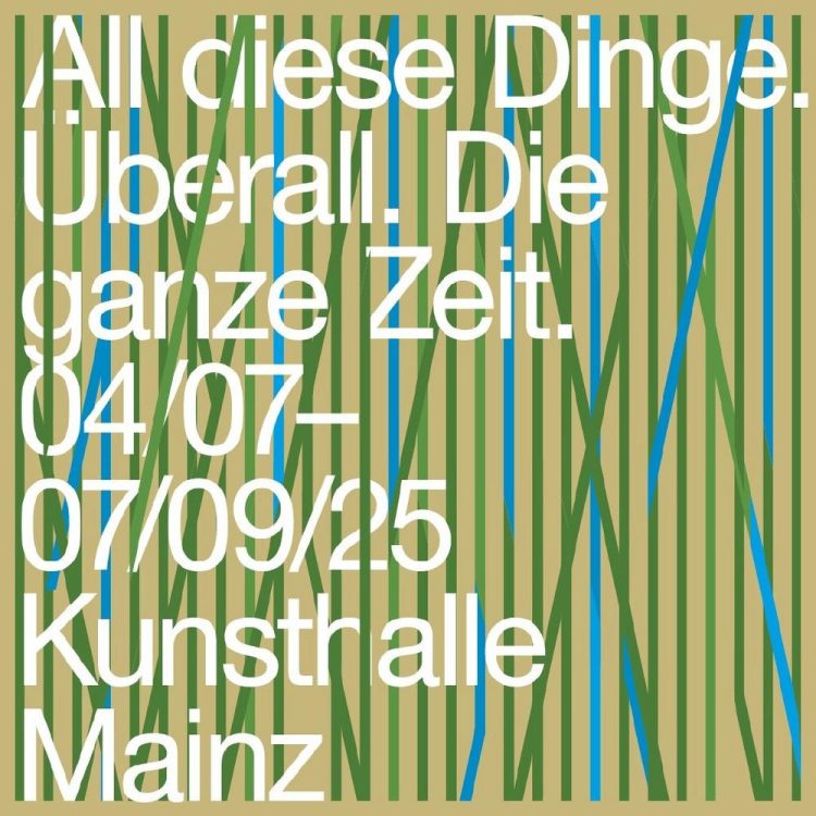All diese Dinge. Überall. Die ganze Zeit. 04/07/25—07/09/25 mit Laslo Chenchanna, Helena Hafemann, Nazanin Hafez, Julien Hübsch, Lejla Jakupović, Charlotte Klinger, Ji Heaun Kweon,Saskia Neumann, Katrin Nicklas, Levin Oehler, Leonard Schlöder, Liza Stipic, Kübra Ural Dinge sind in alle Strömungen unserer Lebenswelt eingebunden. Wir nehmen sie oft erst bewusst wahr, wenn sie plötzlich kaputt gehen,…Continue reading All diese Dinge. Überall. Die ganze Zeit. (Ausstellung | Mainz)