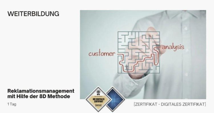 Reklamationsmanagement mit Hilfe der 8D Methode Das Reklamationsmanagement umfasst die Planung, Durchführung und Überwachung aller Maßnahmen, die ein Unternehmen bezüglich Kundenreklamationen hinsichtlich Warenlieferungen und sonstigen Leistungen ergreift. Mit Reklamation sind ausschließlich fehlerhafte Waren, Dienstleistungen oder Abläufe gemeint. Ziel ist es, die Kundenzufriedenheit wiederherzustellen und die negativen Auswirkungen der Unzufriedenheit, z.B. Abwanderung des Kunden, Imageschaden etc., zu minimieren. Ebenso kann eine Kundenreklamation als Ausgangspunkt…Continue reading Reklamationsmanagement mit Hilfe der 8D Methode (Seminar | Frankfurt am Main)