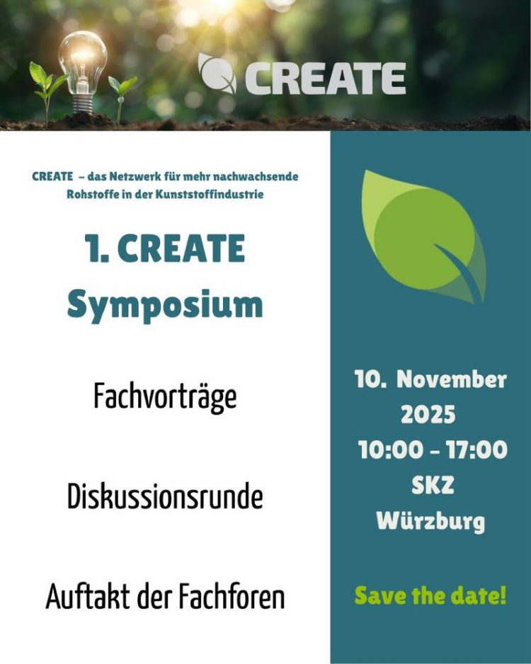 Das Symposium ist Teil von CREATE – einem Netzwerkprojekt zur Förderung nachwachsender Rohstoffe in der Kunststoffindustrie und findet am SKZ – Das Kunststoff-Zentrum in Würzburg statt. In diesem dreijährigen, vom BMWK geförderten Projekt, wird ein starkes Netzwerk aufgebaut, um technische Hürden beim Einsatz von NaWaRo (nachwachsende Rohstoffe) in Kunststoffprodukten zu überwinden und Marktpotenziale aufzuzeigen. Programm Von…Continue reading CREATE-Symposium (Konferenz | Würzburg)