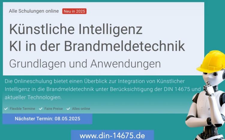 Grundlagen der Künstlichen IntelligenzIm Kontext von Brandschutz und Brandmeldeanlagen: Die Digitalisierung verändert auch den Brandschutz. Künstliche Intelligenz (KI) ist längst kein Zukunftsthema mehr, sondern bereits heute Bestandteil technischer Entwicklungen, auch im Bereich von Brandmeldeanlagen. Dieses Online-Seminar richtet sich an Fachkräfte im vorbeugenden Brandschutz, Betreiber, Errichter, Sachverständige und Planer, die die grundlegenden Funktionsweisen, Begriffe und Chancen der Künstlichen…Continue reading Grundlagen der Künstlichen Intelligenz Im Kontext von Brandschutz und Brandmeldeanlagen (Schulung | Online)