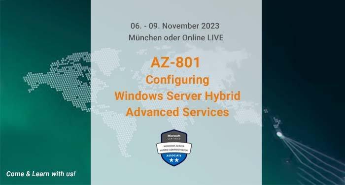 Vom 06. – 09.11.2023 bieten wir unseren Kurs zum Thema AZ-801 Configuring Windows Server Hybrid Advanced Services. Dort bekommen Sie folgende Inhalte vermittelt: Hybride Funktionen von Azure nutzen Virtuelle und physische Server-Workloads auf Azure IaaS migrieren Azure VMs mit Windows Server verwalten und sichern Hochverfügbarkeit, Fehlerbehebung und Notfallwiederherstellun Vorbereitung auf die Zertifizierung als Windows Server…Continue reading AZ-801 Configuring Windows Server Hybrid Advanced Services (Seminar | Online)