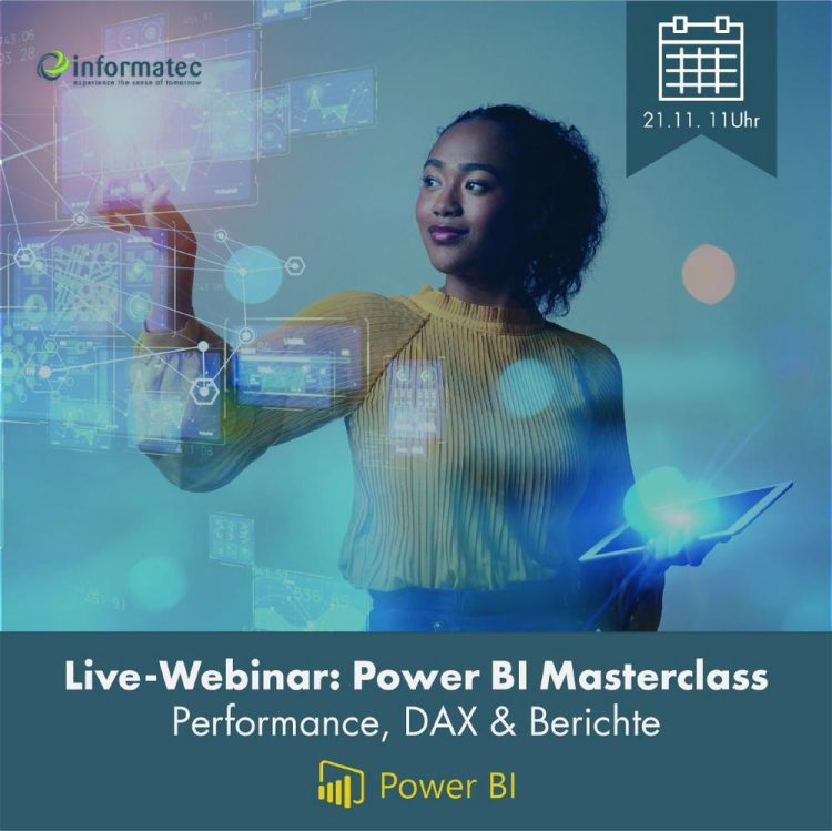 Power BI erfolgreich meistern: Performance, komplexe DAX-Berechnungen und bewährte Berichtsentwicklung In diesem Webinar werden wir gänzlich in Power BI eintauchen und Ihnen wertvolle Einblicke bieten, wie Sie Performance-Probleme bewältigen, komplexe DAX-Berechnungen meistern und bewährte Praktiken in der Entwicklung von Power BI-Berichten anwenden können. Egal, ob Sie ein Einsteiger oder ein erfahrener Anwender sind, dieses…Continue reading Live-Webinar: Power BI Masterclass: Performance, DAX & Berichte (Webinar | Online)