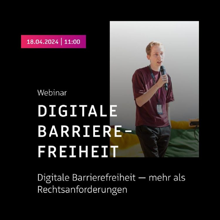 Möchten Sie die digitale Barrierefreiheit Ihrer Produkte und Dienstleistungen verbessern und dabei neue Zielgruppen erreichen?In unserem interaktiven Webinar werden wir die Bedeutung von digitaler Barrierefreiheit über die reinen Rechtsanforderungen hinaus beleuchten.Adrian Wegener zeigt Ihnen, wie Accessibility als Business Case und UX-Grundlage genutzt werden kann. Erfahren Sie, wie digitale Barrierefreiheit neue Zielgruppen erschließt und das Marktpotenzial…Continue reading Digitale Barrierefreiheit – mehr als Rechtsanforderungen (Webinar | Online)