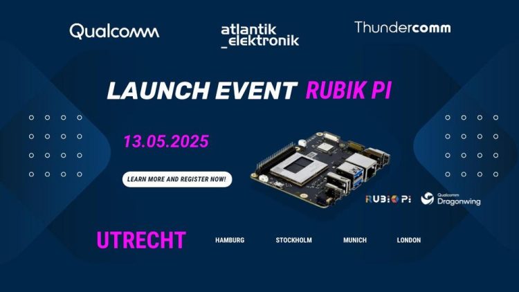 We cordially invite you to join us at our exclusive RUBIK Pi Launch Event in Utrecht on May 13, 2025! Together with Qualcomm Technologies and Thundercomm, Inc. we are organizing interactive RUBIK Pi launch events in various European cities from 13 May to 28 May 2025. In Munich, Hamburg, Utrecht, London and Stockholm, we are…Continue reading Interactive RUBIK Pi Launch Event in Utrecht (Seminar | Utrecht)