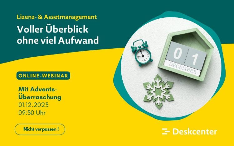 Der kurze Weg zu voller Transparenz In wenigen Wochen ist Weihnachten und die Zeit bis zum Jahresende mehr als überschaubar. Deutlich weniger übersichtlich ist da schon die Menge an IT-Equipment und Software. Das liegt zum einen an der Menge an Assets, zum anderen daran, dass sich der Bestand ständig ändert. Laptops, Tablets, PCs, Smartphones, Server,…Continue reading IT-Assets und Lizenzen einfach managen: Kostenloses Webinar am 1.12. (Webinar | Online)