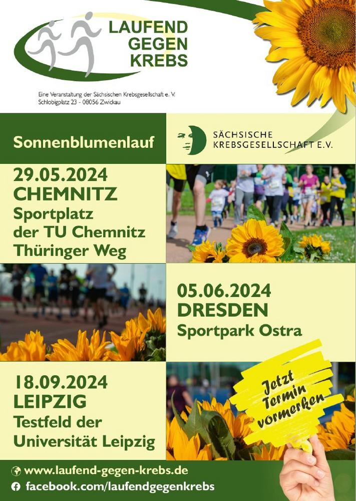 Laufend gegen Krebs“ ist eine Benefizveranstaltung auf dem Gelände der Universität in Leipzig, auf dem Sportplatz der TU in Chemnitz und in Dresden im Sportpark Ostra. Auf dieser bundesweit einzigartigen Veranstaltung werden sich ehrenamtliche Helfer, Benefizmannschaften und Spender zusammenschließen und ihre Solidarität mit Betroffenen und ihren Angehörigen bekunden. Die Veranstaltung gliedert sich verschiedene Arten von…Continue reading 3. Laufend gegen Krebs (Unterhaltung / Freizeit | Dresden)