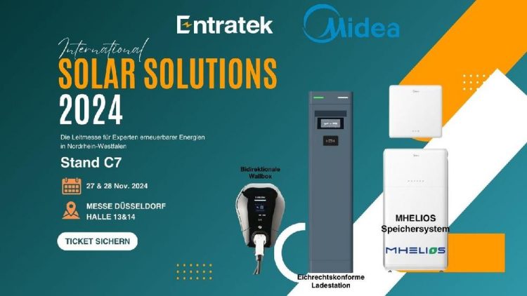 Besuchen Sie Entratek und Midea auf der Solar Solutions Düsseldorf am 27. & 28. November 2024! 🔋🌞 Wir laden alle herzlich ein, an unserem Stand C7 vorbeizukommen und unsere neuesten Innovationen in der Energie- und Ladetechnologie zu entdecken! Nutzen Sie diese einmalige Gelegenheit, unsere bahnbrechenden Technologien hautnah zu erleben und lassen Sie sich inspirieren! Wir freuen…Continue reading Entratek und Midea auf der Solar Solutions 2024 (Messe | Düsseldorf)