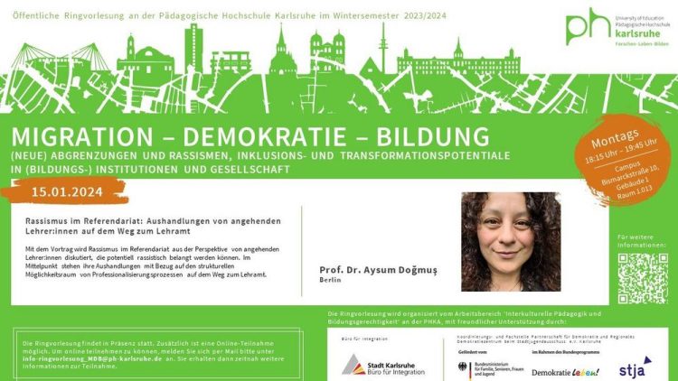 Rassismus im Referendariat: Aushandlungen von angehenden Lehrer:innen auf dem Weg zum Lehramt Vortrag von Prof.‘in Dr. Aysun Dogmus, Berlin, im Rahmen der Ringvorlesung „Migration – Demokratie – Bildung“ an der Pädagogischen Hochschule Karlsruhe Mit dem Vortrag wird Rassismus im Referendariat aus der Perspektive von angehenden Lehrer:innen diskutiert, die potentiell rassistisch belangt werden können. Im Mittelpunkt…Continue reading Rassismus im Referendariat (Vortrag | Karlsruhe)