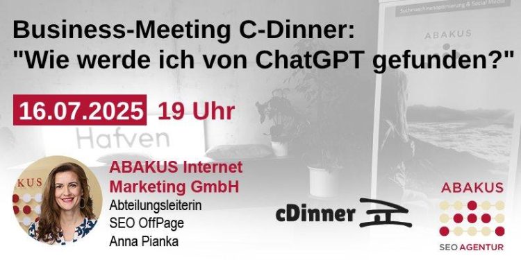 Immer mehr Unternehmen fragen sich: Muss ich jetzt auch etwas tun, um in den generierten Antworten bei ChatGPT und Co. aufzutauchen? Am 16.07.2025 findet im Rahmen des cDinners Hannover im Hafven ein Impulsvortrag zum Thema „Wie werde ich von ChatGPT gefunden?“ mit der Referentin und SEO OffPage Expertin Anna Pianka statt. In dem Kurzvortrag werden…Continue reading „Wie werde ich von ChatGPT gefunden?“ Impulsvortrag beim C-Dinner im Hafven am 16.07.2025 (Vortrag | Hannover)