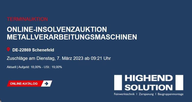 Online-Insolvenzauktion Metallverarbeitungsmaschinen (Sonstiges | Online)