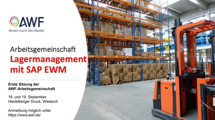 Erste Sitzung der AWF-Arbeitsgemeinschaft am 18. und 19. September bei Heidelberger Druck 1. Termin 18./19.09.23Thema: Implementierungmethodik und Vorgehen / Change Management & User acceptanceGastgeber: Heidelberger Druck, Wiesloch Arbeitsgemeinschaft „Lagermanagement mit SAP“Die Arbeitsgemeinschaft ist in einer Kooperation von AWF, LogiPlus und MALORG entstanden. Inhalt der Arbeitsgemeinschaft:Die Zeit von SAP WM läuft ab, die SAP setzt bereits…Continue reading Lagermanagement mit SAP® – AWF Arbeitsgemeinschaft – 1. Arbeitssitzung (Workshop | Wiesloch)