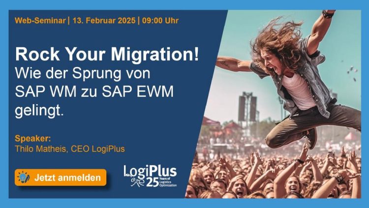 Die LogiPlus Consulting GmbH, veranstaltet am 13. Februar von 09:00 bis 10:00 Uhr ein exklusives Web-Seminar unter dem Titel „Rock Your Migration! Wie der Sprung von SAP WM zu SAP EWM gelingt.“ Das kostenfreie Web-Seminar richtet sich vor allem an Unternehmen, die vor der Herausforderung stehen, das Lagerverwaltungssystem SAP Warehouse Management (WM) abzulösen und einen…Continue reading Web-Seminar „Rock Your Migration! Wie der Sprung von SAP WM zu SAP EWM gelingt.“ (Webinar | Online)