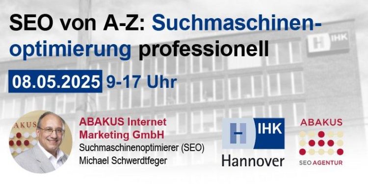 Möchten Sie Ihre digitale Sichtbarkeit nachhaltig steigern? Am 8. Mai 2025 lädt die Industrie- und Handelskammer (IHK) Hannover zum Tagesseminar „Suchmaschinenoptimierung (SEO) von A bis Z“ ein. In diesem praxisorientierten Seminar erhalten Sie wertvolle Einblicke in aktuelle SEO-Strategien und lernen, wie Sie Ihre Webpräsenz effektiv für Suchmaschinen optimieren können. Referent Michael Schwerdtfeger, Suchmaschinenoptimierer bei der…Continue reading SEO von A bis Z: Suchmaschinenoptimierung professionell (Seminar | Hannover)