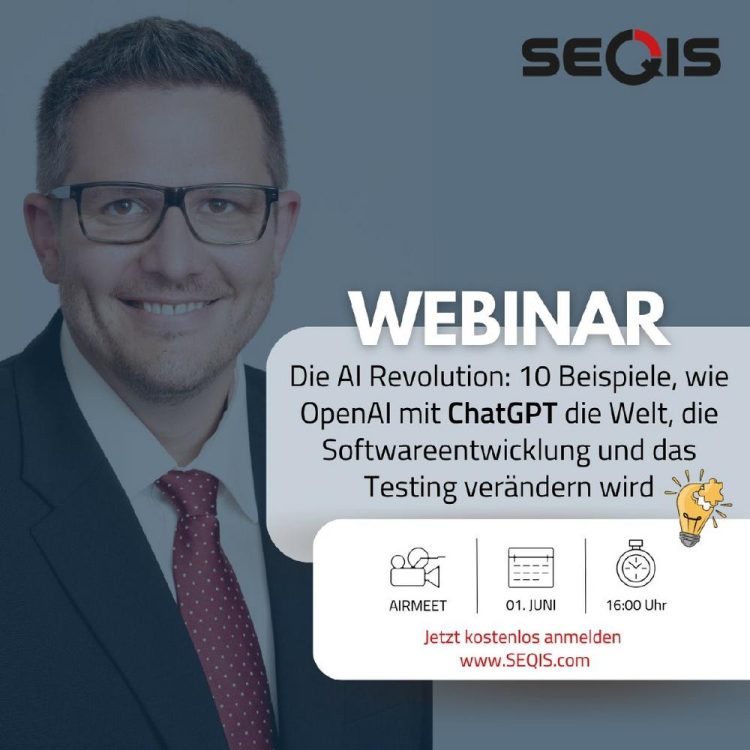 Die AI Revolution: 10 Beispiele, wie OpenAI mit ChatGPT die Welt, die Softwareentwicklung und das Testing verändern wird Beschäftigen Sie sich mit den Themen Softwareentwicklung, AI und Testing, dann dürfen Sie diesen Vortrag nicht verpassen! Im November 2022 hat OpenAI die Software ChatGPT für die breite Öffentlichkeit verfügbar gemacht, seitdem überschlagen sich die Blogartikel und Videos zu…Continue reading Die AI Revolution: ChatGPT (Webinar | Online)