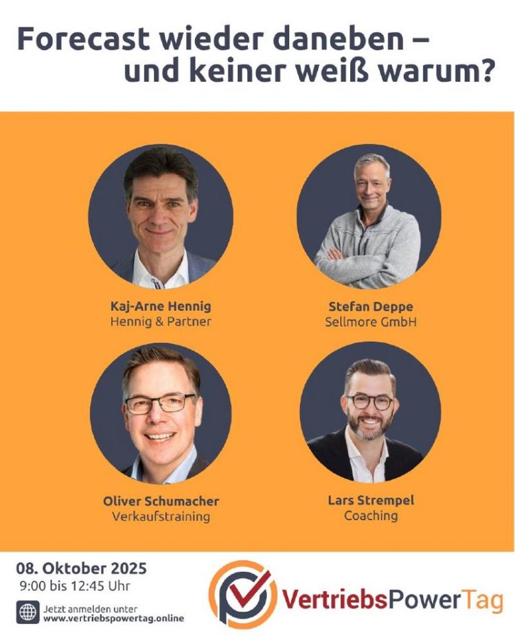 Schluss mit Angebotschaos, ungenauen Forecasts und verlorenen Aufträgen!Beim VertriebsPowerTag 2025 zeigen wir Ihnen, wie Sie mit System, Sicherheit und Selbstbewusstsein Ihre Angebote in Aufträge verwandeln – und endlich wieder die Kontrolle über Ihre Pipeline gewinnen. Erleben Sie vier praxisnahe Impulse von Top-Speakern: Kaj-Arne Hennig – Die 5-Sterne-Methode für erfolgreichen VerkaufWie Sie aus „guten Gesprächen“ systematisch…Continue reading VertriebsPowerTag: Vom Angebot zum Auftrag (Webinar | Online)
